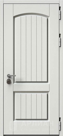 Входная железная дверь с белым цветом внешней панели и глубокой фрезеровкой на панели №13