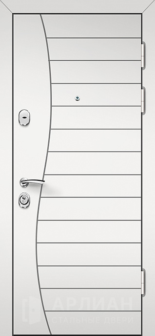 Фото «Входная белая дверь с отделкой "волна" с верхним и нижним замками №16»