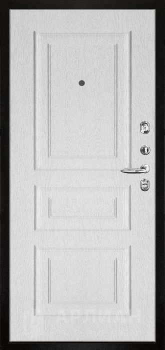 Надежная входная белая дверь с качественной фурнитурой и внутренней отделкой цвета орех №3